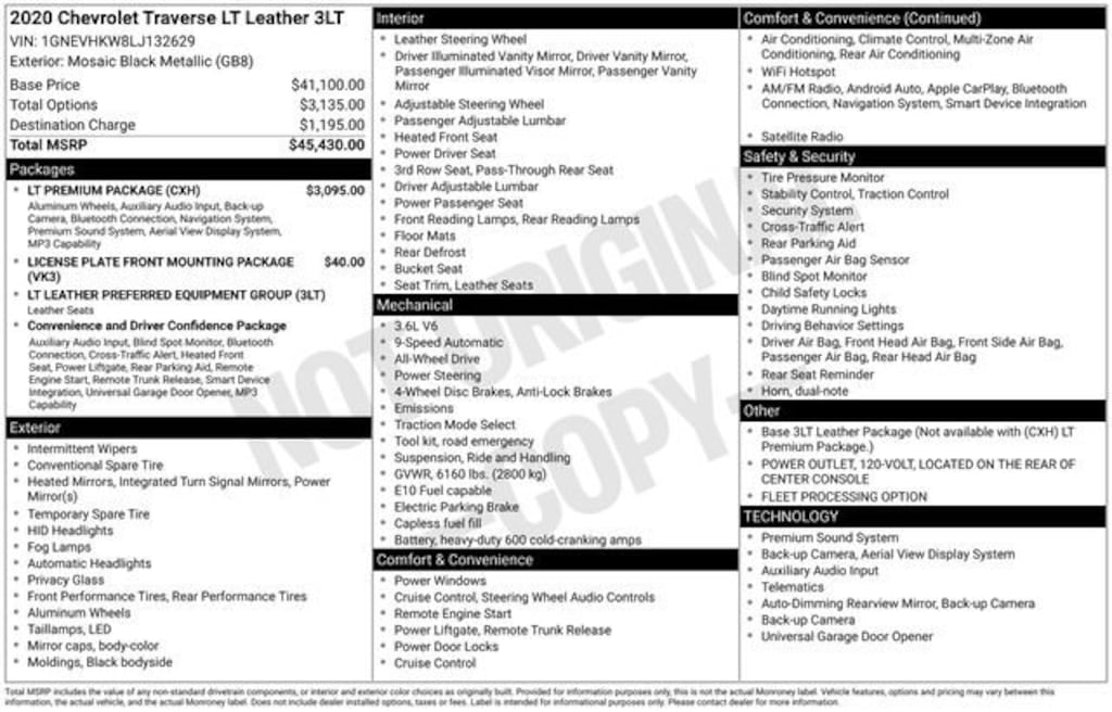 2020 Chevrolet Traverse 3LT Mosaic Black Metallic AWD 9-Speed Automatic 3.6L V6 SIDI VVT