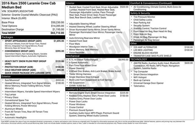 2016 Ram 2500 Laramie Granite Crystal Metallic Clearcoat 4WD 6-Speed Cummins 6.7L I6 Turbodiesel